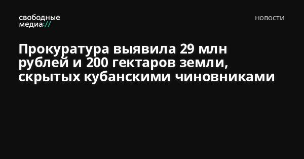 Чиновники Кубани за полгода скрыли 29 миллионов рублей доходов и 200 гектаров земли, сообщает прокурор Краснодарского края Сергей Табельский.