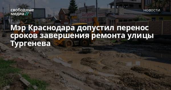 Мэр Краснодара Евгений Первышов 25 июля на совещании в администрации сообщил, что из-за последних ливней ремонт улицы Тургенева может затянуться.