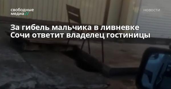 Следственный комитет предъявил обвинение владельцу гостиницы, в которой проживал семилетний мальчик со своей бабушкой. 3 августа в поселке Лазаревское на улице Октябрьской во время сильного дождя ребенок упал в ливневую канаву рядом с гостиницей. Тело мальчика обнаружили в море в районе русла реки Свирка.