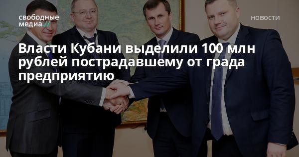 Из краевого бюджета выделено 100 миллионов рублей на спасение от банкротства предприятия ООО «Техада», которое пострадало от града в Павловском районе 30 июня, сообщили в пресс-службе администрации Краснодарского края.