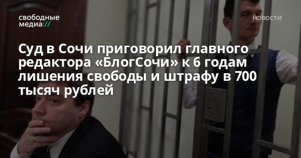 Судья Лазаревского районного суда Сочи Николай Трухан приговорил главного редактора «БлогСочи» Александра Валова к 6 годам лишения свободы и штрафу в 700 тысяч рублей по статье о вымогательстве (ст.163 ч.2 п.г УК РФ), сообщил Свободным Медиа активист Евгений Витишко. Суд признал виновным Валова в вымогательстве у депутата Госдумы от ЛДПР Юрия Напсо.