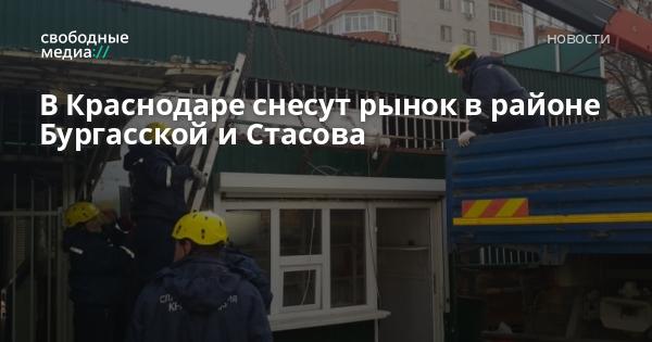Администрация Краснодара приступила к сносу рынка на пересечении улиц Бургасской и Стасова. Всего на территории площадью 556 кв. м будут демонтированы 10 торговых рядов — 61 киоск, 5 павильонов, ворота, заборы, бахчевой развал, навесы, а также здание-бытовка. Демонтаж планируется завершить в течение недели, сообщает пресс-служба администрации Краснодара.