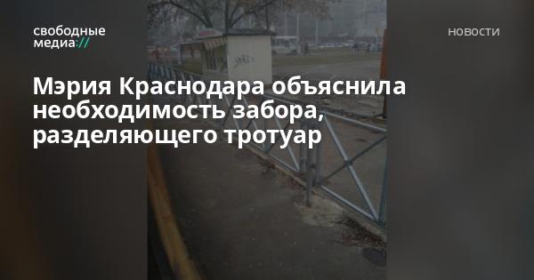 Директор департамента транспорта и дорожного хозяйства Краснодара Владимир Архипов прокомментировал Свободным Медиа установку забора, разделяющего тротуар на трамвайной остановке «Институт культуры», которая находится на пересечении улиц Московской и 40 лет Победы.