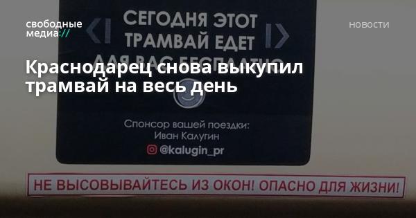 «Если ты краснодарец и перемещаешься на трамваях, то маршрут № 5 вагон 252 будет перевозить сегодня бесплатно. Я купил его для всех жителей нашего города, чтобы вы стали немного счастливее», — написал в своем аккаунте в Instagram 24-летний блогер.