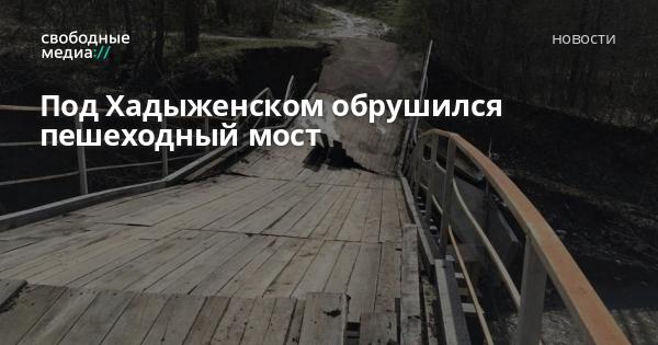 Под Хадыженском рухнул пешеходный мост через реку Хадажка в хуторе Травалев. Сообщается, что за мостом проживают 17 человек, в том числе пятеро детей.