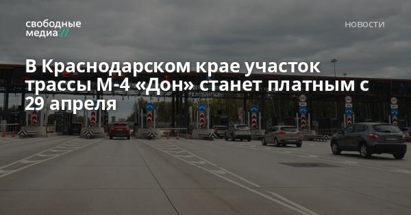 На участке 1195 — 1319 км федеральной автомобильной дороги М-4 «Дон» (Павловский, Выселковский и Кореновский районы) в Краснодарском крае с 29 апреля вводится режим платной эксплуатации.