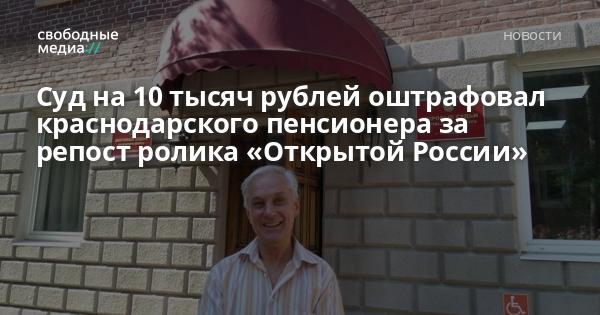 30 мая мировой суд Краснодара оштрафовал на 10 тысяч рублей пенсионера Леонида Малявина за репост видеоролика «Открытой России», который он сделал в феврале.