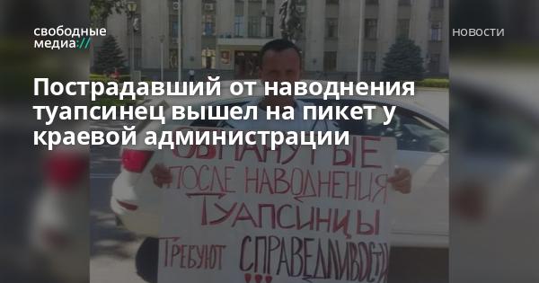 В Краснодаре на одиночный пикет вышел один из пострадавших во время наводнения в октябре 2018 года в Туапсинском районе Михаил Дремов, сообщает «Росбалт».