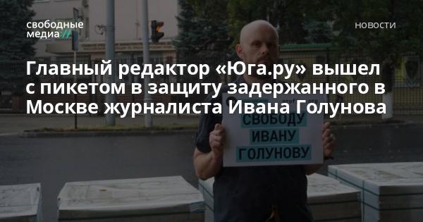 В Краснодаре у здания кубанского ГУ МВД главный редактор портала «Юга.ру» Артём Беседин вышел с одиночным пикетом в защиту московского журналиста «Медузы» Ивана Голунова.