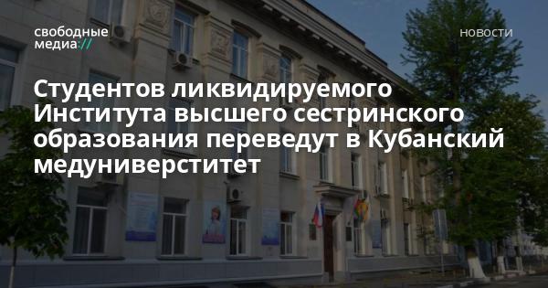 Более 750 студентов института высшего сестринского образования в Краснодаре будут переведены в Кубанский медицинский университет. Об этом сообщил мэр Краснодара Евгений Первышов.