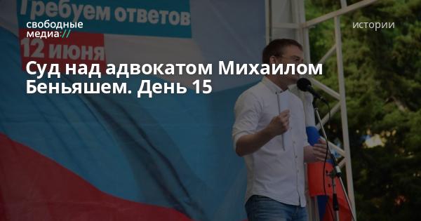 2 июля в Ленинском районном суде Краснодара проходит пятнадцатое заседание по делу адвоката Михаила Беньяша, которого обвиняют в насилии над полицейскими Юрченко и Долговым во время задержания 9 сентября 2018 года перед акцией против пенсионной реформы.