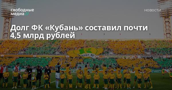 В Арбитражном суде Краснодарского края стала известная общая сумма задолженности ФК «Кубань». Она составила почти 4,5 млрд рублей, пишет РБК.