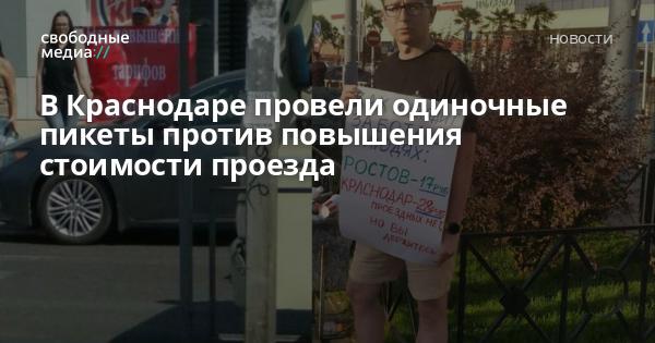 Жители Краснодара вышли с одиночными пикетами против повышения стоимости проезда в общественном транспорте.
