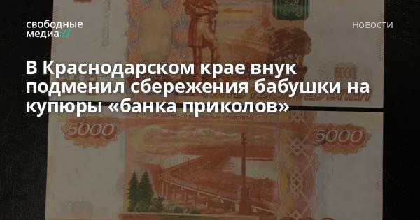 В Брюховецком районе 24-летний местный житель подменил все хранящиеся у своей бабушки деньги на билеты «банка приколов». Ущерб составил 130 тысяч рублей.