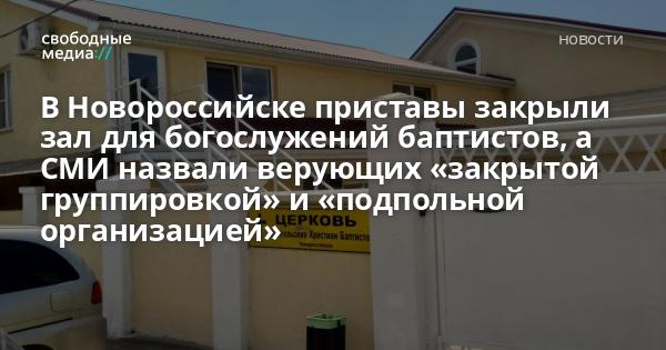 7 июля в поселке Верхнебаканском в Новороссийске приставы опечатали зал для богослужений прихожан церкви евангельских христиан-баптистов, об этом Свободным Медиа сообщил пресвитер местной религиозной организации Евгений Кокора. Он опасается, что баптистов признают экстремистами вслед за запрещенными в России «Свидетелями Иеговы».