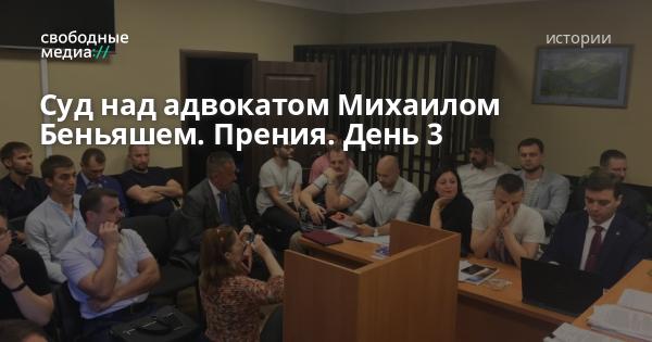 17 сентября в Ленинском районном суде Краснодара проходит третий день прений по делу адвоката Михаила Беньяша, которого обвиняют в насилии над полицейскими Юрченко и Долговым во время задержания 9 сентября 2018 года перед акцией против пенсионной реформы. Формальным поводом для задержания адвоката стал призыв к участию в акции, про который в суде никто не смог внятно рассказать.