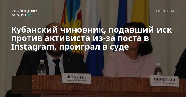 Советский суд Краснодара принял решение отказать в удовлетворении требований главы Новотаманского сельского поселения Темрюкского района Георгия Шлахтера к активисту и инстаграм-блогеру Сергею Пинягину, сообщил активист Свободным Медиа.