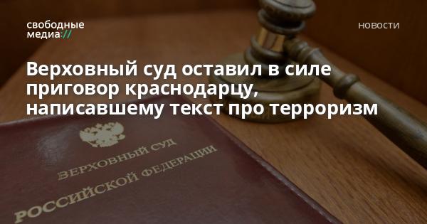Верховный суд Российской Федерации оставил в силе приговор Северо-Кавказского окружного военного суда краснодарцу Сергею Кучевскому, осужденному за оправдание терроризма. Об этом сообщил «Кавказский узел» со ссылкой на пресс-службу суда.