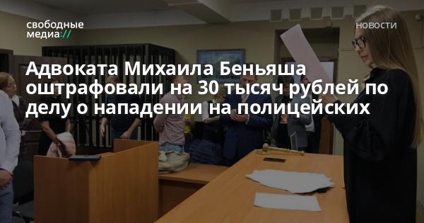 Ленинский районный суд Краснодара оштрафовал адвоката Михаила Беньяша на 30 тысяч рублей по делу о нападении на полицейских, сообщает корреспондент Свободных Медиа из зала суда.
