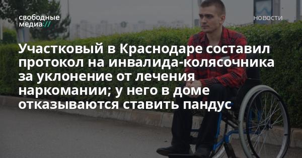 В Краснодаре участковый полиции составил протокол на инвалида-колясочника Петра Кравченко по статье 6.9.1 КоАП «Уклонение от лечения наркомании», написал адвокат Алексей Аванесян в фэйсбуке. При этом управляющая компания отказала Кравченко в установке пандуса в подъезде, рассказал адвокат Свободным Медиа.