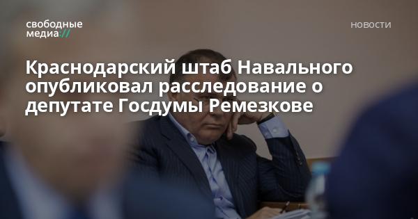 Краснодарский штаб политика Алексея Навального опубликовал расследование о собственности на территории Краснодарского края депутата Госдумы Александра Ремезкова. Ранее Ремезков находился в должности вице-губернатора Краснодарского края при Александре Ткачёве.