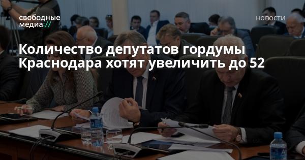В городской Думе Краснодара предложили увеличить количество депутатов с 48 до 52 человек. 39 из них предлагается избирать по одномандатным округам и 13 — по партийным спискам.