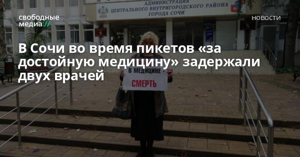 В Сочи во время одиночных пикетов «за достойную медицину» полиция задержала председателя местного отделения «Альянса врачей» Юлию Волкову и врача Юлию Фрелих, об этом «Медиазоне» рассказала сама Волкова.