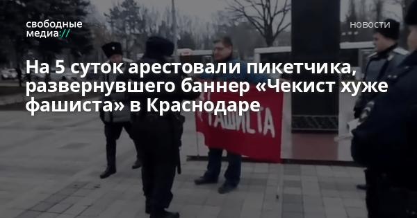 Ранее Свободные Медиа сообщали о задержании активиста Виталия Молоданова, стоявшего в одиночном пикете с баннером «Чекист хуже фашиста» около памятника Феликсу Дзержинскому в Краснодаре.
