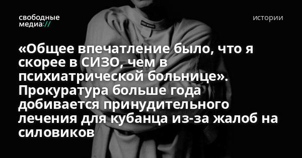 Свободные Медиа поговорили с Максимом Соколовым о его 26 днях, проведенных в психбольнице и результатах экспертизы, а также сами ознакомились с выводами кубанских психиатров.