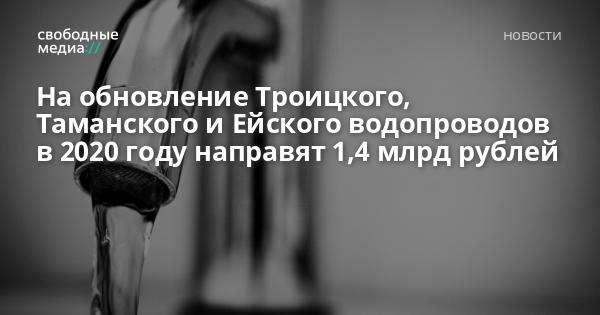 В связи с износом сетей Троицкого, Таманского и Ейского групповых водопроводов и происходящими из-за этого авариями началась работа по их замене. В этом году финансирование составит 1,4 млрд рублей.