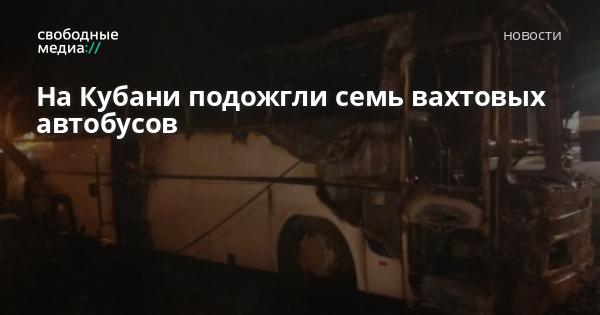 По данным пресс-службы ГУ МЧС по Краснодарскому краю, возгорания семи автобусов произошли в период с 3:00 до 4:30 в станице Динской, Некрасовской, Старокорсунской и в Немецкой Деревне в Краснодаре.