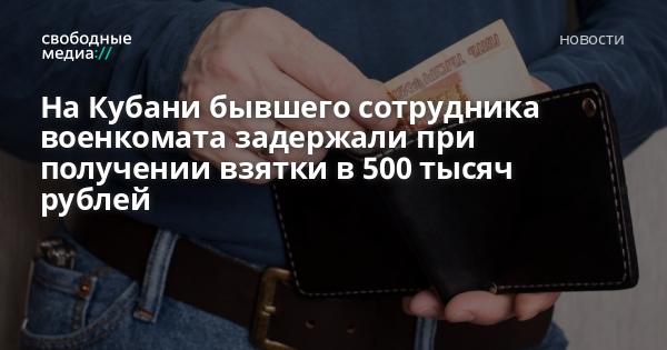 Сотрудники УФСБ на Кубани задержали с поличным бывшего сотрудника военного комиссариата при получении полумиллиона рублей, сообщает ТАСС со ссылкой на УФСБ по региону.