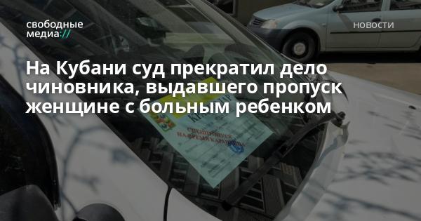 Суд прекратил производство по административному делу в отношении чиновника Щербиновского района, выдавшему пропуск матери, перевозившей больного ребенка.