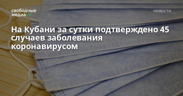 В Краснодарском крае за сутки зарегистрировано 45 случаев заболевания COVID-19, сообщает оперативный штаб.