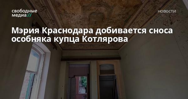Мэрия Краснодара через суд оспаривает запрет сноса особняка купца Котлярова на улице Коммунаров, 108, которое включили в список культурного наследия, сообщает «Коммерсант».