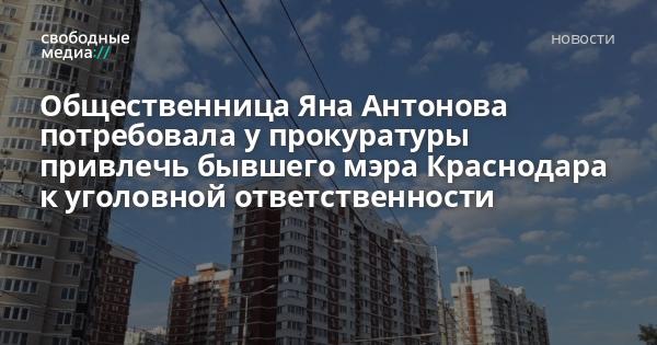 Гражданский активист Яна Антонова потребовала у прокурора Краснодарского края Сергея Табельского привлечь к уголовной ответственности Владимира Евланова, бывшего мэра Краснодара, сейчас депутата госдумы.