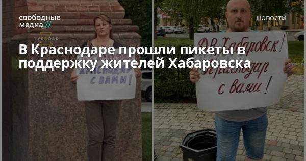 В Краснодаре прошли одиночные пикеты в поддержку жителей Хабаровска, митингующих после задержания губернатора Сергея Фургала, арестованного по подозрению в организации заказных убийств, фото опубликовано в городском аккаунте «Туподар».
