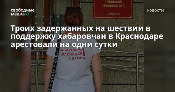 Ленинский районный суд Краснодара арестовал троих из семи задержанных краснодарцев на протестной акции в поддержку хабаровчан. Об этом сообщил адвокат Алексей Аванесян, осуществлявший защиту активистов.