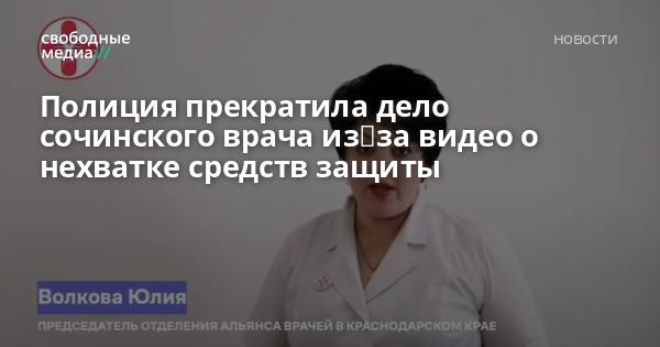 Ранее Свободные Медиа сообщали, что в Сочи обвинили эндокринолога Юлию Волкову в злоупотреблении свободой массовой информации из-за видеоролика, который она опубликовала в социальных сетях.