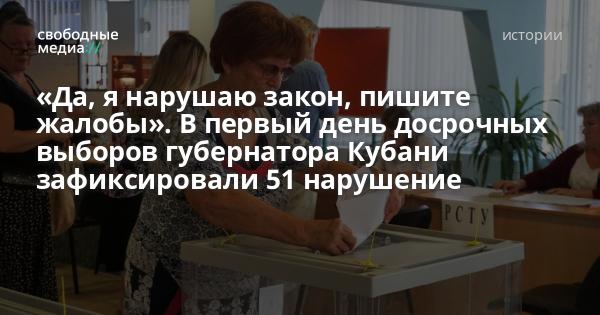 Согласно проекту «Карта нарушений», на который могут вносить сообщения члены комиссий, наблюдатели и представители СМИ, в Краснодарском крае в первый день досрочного голосования было зафиксировано 51 нарушение.