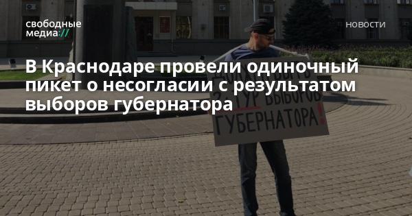 В Краснодаре напротив здания краевой администрации мужчина вышел с одиночным пикетом с плакатом «Должен быть 2-й тур выборов губернатора». Фото пикета появилось в социальных сетях.