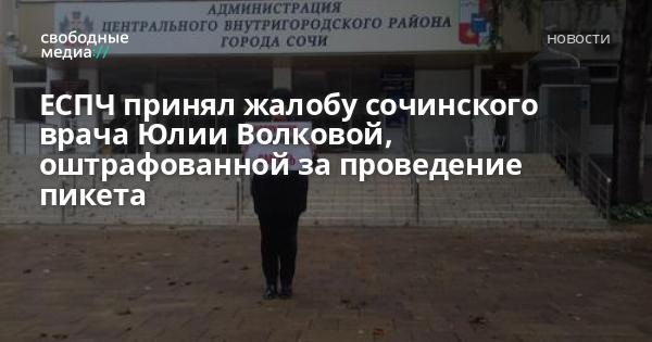 Сочинский врач-эндокринолог Юлия Волкова, оштрафованная за проведение одиночного пикета против коррупции в медицине, получила письменное сообщение из ЕСПЧ о том, что ее жалоба принята к рассмотрению, сообщает «Кавказский узел».