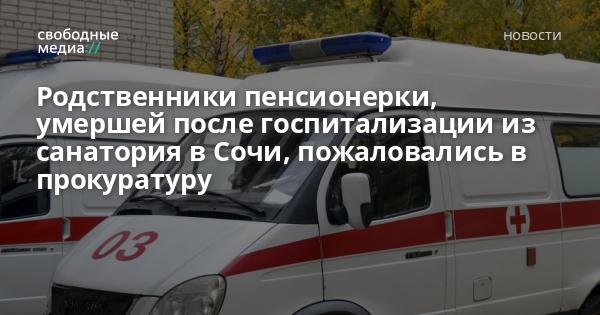 Пожилая москвичка Светлана Гуляева, госпитализированная из сочинского санатория с инсультом, умерла в реанимации. Родственники считают, что в санатории вовремя не оказали медицинскую помощь, сообщает «Кавказский узел».