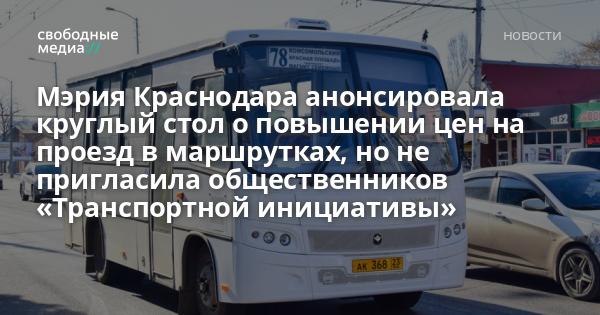 Чтобы урегулировать разногласия между общественниками, жителями города, мэрией и частными перевозчиками, администрация Краснодара анонсировала круглый стол, на котором планируется обсудить повышение цены проезда и нарушения, допускаемые частными перевозчиками. Информацию о круглом столе разослали журналистам. Однако глава «Транспортной инициативы» Марина Репещук сообщила, что мэрия созвала всех непрофильных общественников, а её о круглом столе не оповестили. 11 января она записала видеообращение.