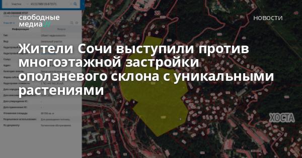 Жители Хостинского района Сочи просят предотвратить застройку многоэтажными апартаментами территории бывшей турбазы «Южная», расположенной на участке оползневого склона с уникальными растениями, сообщает Экологическая Вахта по Северному Кавказу.