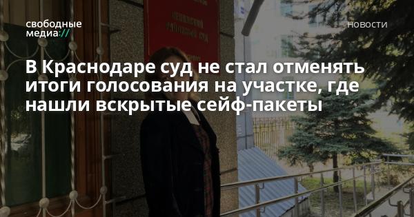 Судья Ленинского районного суда Краснодара Олег Устинов отказался удовлетворить иск Яны Антоновой об отмене результатов выборов в городскую думу на УИК 20-52, где наблюдатели нашли вскрытые сейф-пакеты с бюллетенями, сообщает «Кавказский узел».