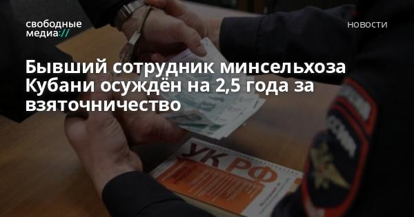 Начальник управления министерства сельского хозяйства и перерабатывающей промышленности Краснодарского края признан судом виновным в получении и покушении на получение взятки.