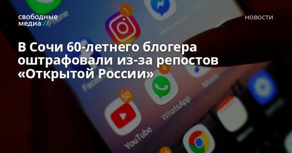 60-летний активист и блогер из Сочи Руслан Торчинов оштрафован на пять тысяч рублей за участие в деятельности «Открытой России», сообщает «Кавказ.Реалии».
