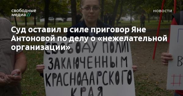 Кассационный суд в Краснодаре оставил в силе приговор Яне Антоновой, которой назначили 240 часов обязательных работ по уголовному делу об участии в деятельности «нежелательной организации» (статья 284.1 УК).