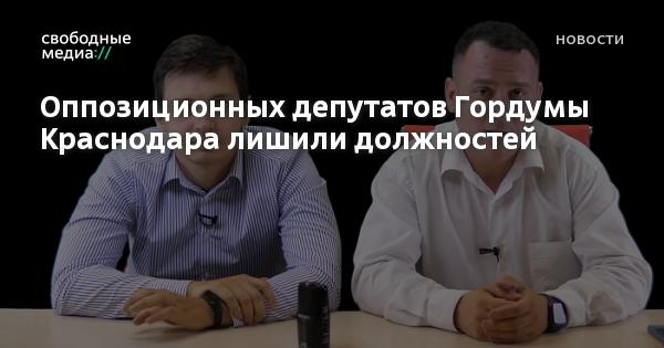 Депутата гордумы Краснодара Александра Сафронова сняли с должности заместителя председателя думы, а Игоря Азарова лишили возможности занимать муниципальные должности до конца полномочий, сообщает «Утренний Юг».